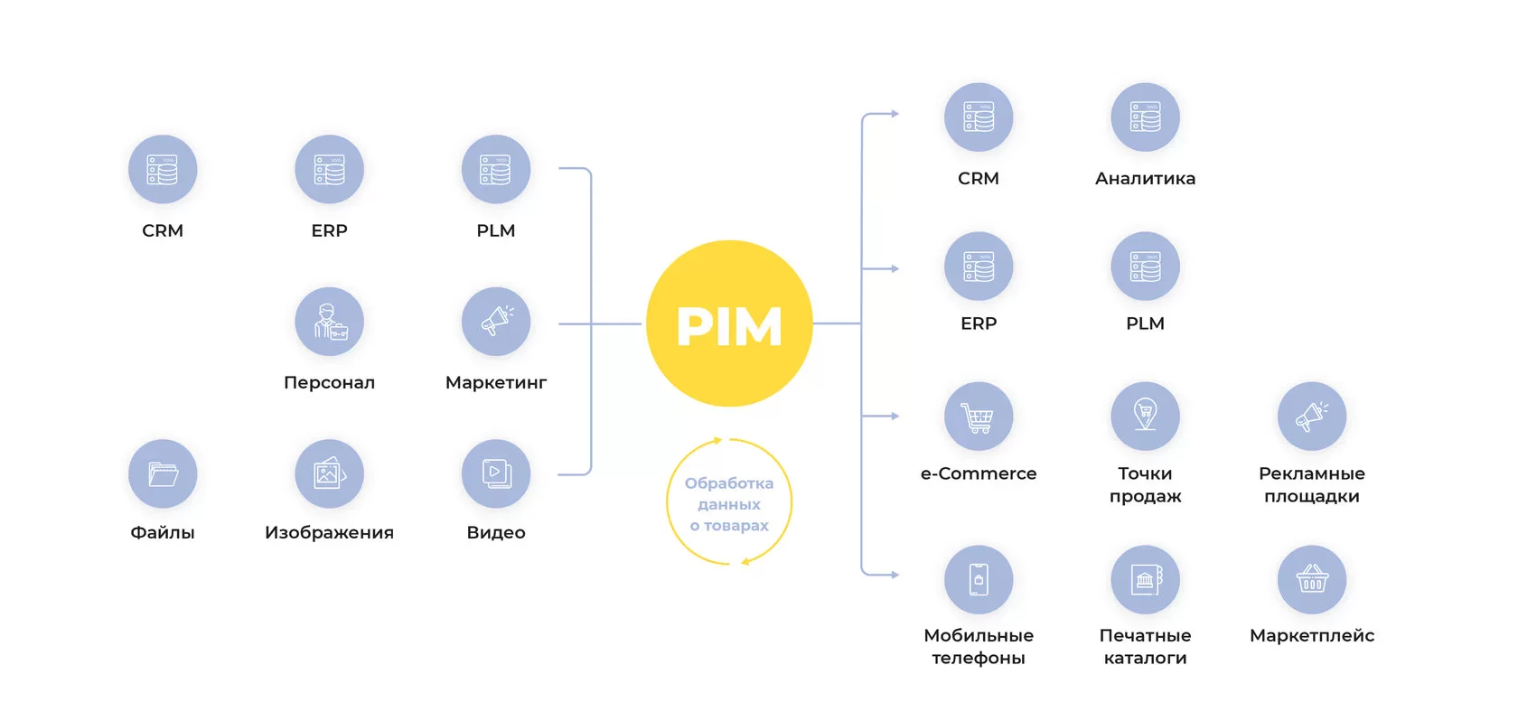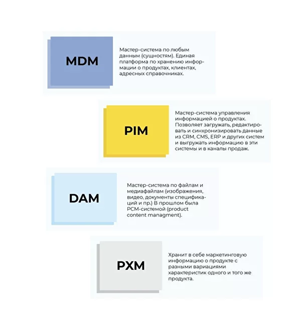 PIM-система — мастер-система по продуктам. Позволяет управлять правилами наполнения и появления информации о продукте, а также появления информации в разных каналах с учётом их специфики. Является частью IT-контура компании и плотно интегрируется в другие системы.