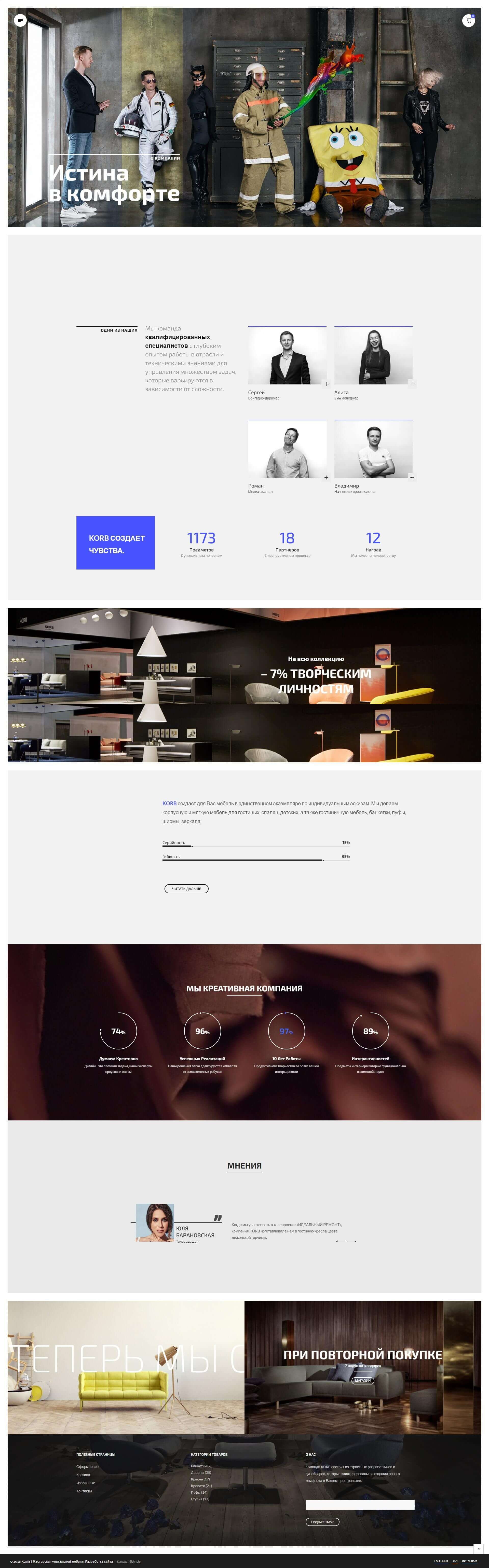 ▪ Акцент на инновации, пристальное внимание motion-эффектам, интерактивам, конструкторам, калькуляторам, что привлекло аудиторию, помогло отстроиться на фоне конкурентов (https://korbmebel.com/contact, https://korbmebel.com/services).