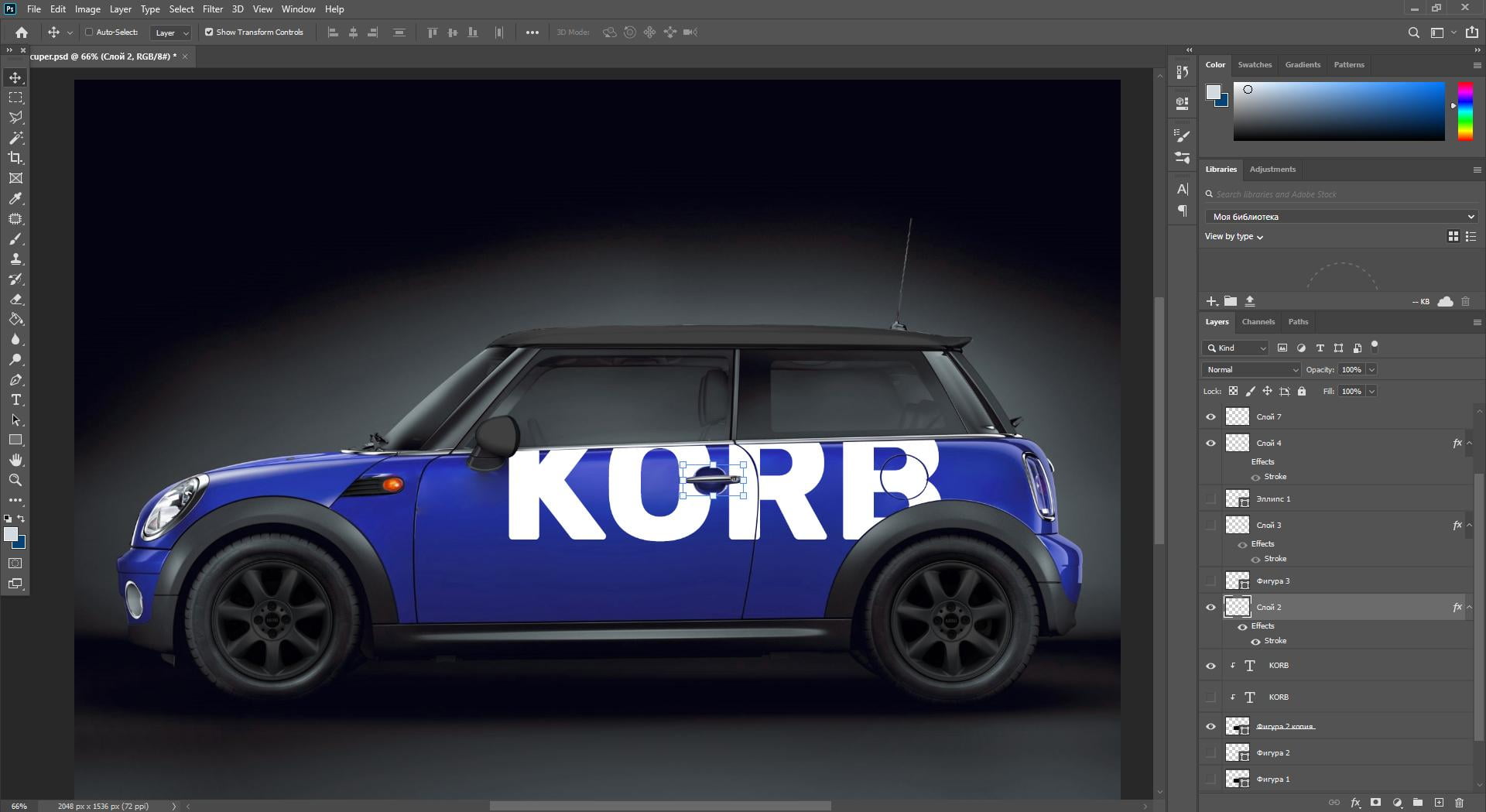 • Создание двусторонней визитки.
