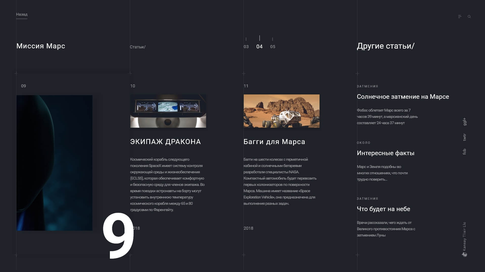 Где мы продемонстрировали, как можно легко и удобно знакомиться с контеном (ифнормацией), благодаря продуманному юзабили. Этот проект связан с проектом "Zerg" и приурочен к предстоящему полету на Марс