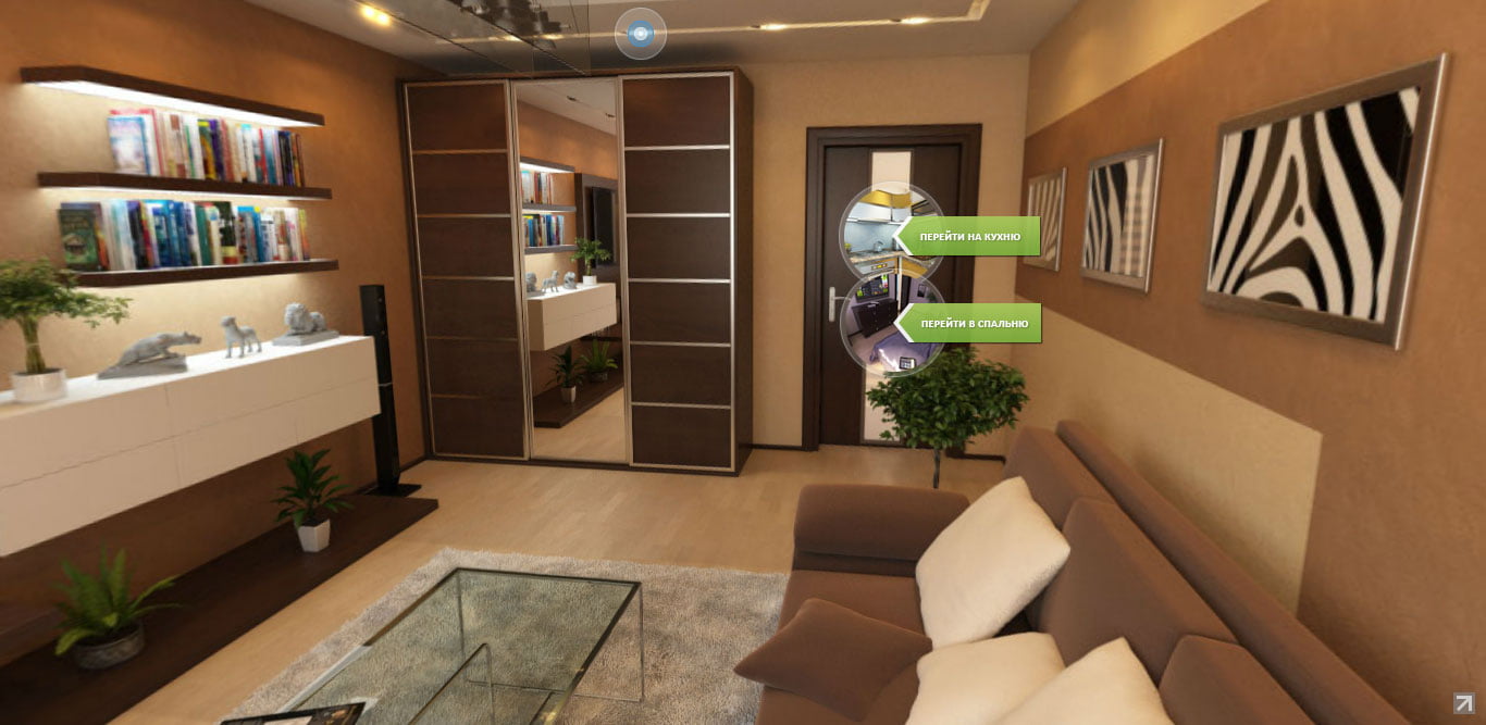 На обновленном сайте появилась возможность 3D-тура по квартире, для чего был полностью смоделирован интерьер реальной квартиры.
