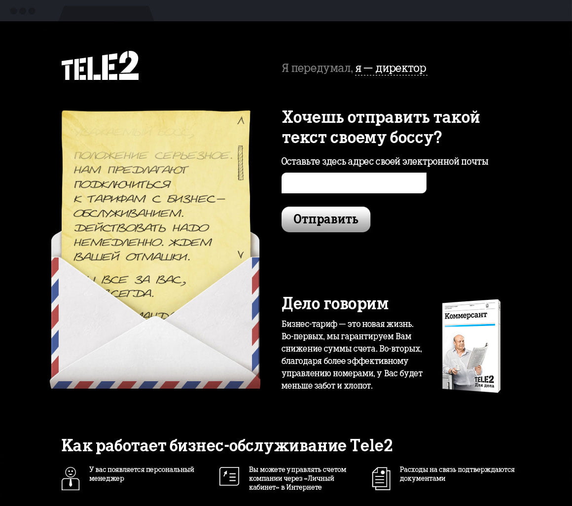 Портфель продуктов Tele2 включает предложения как для частных лиц, так и для малых и средних предприятий.