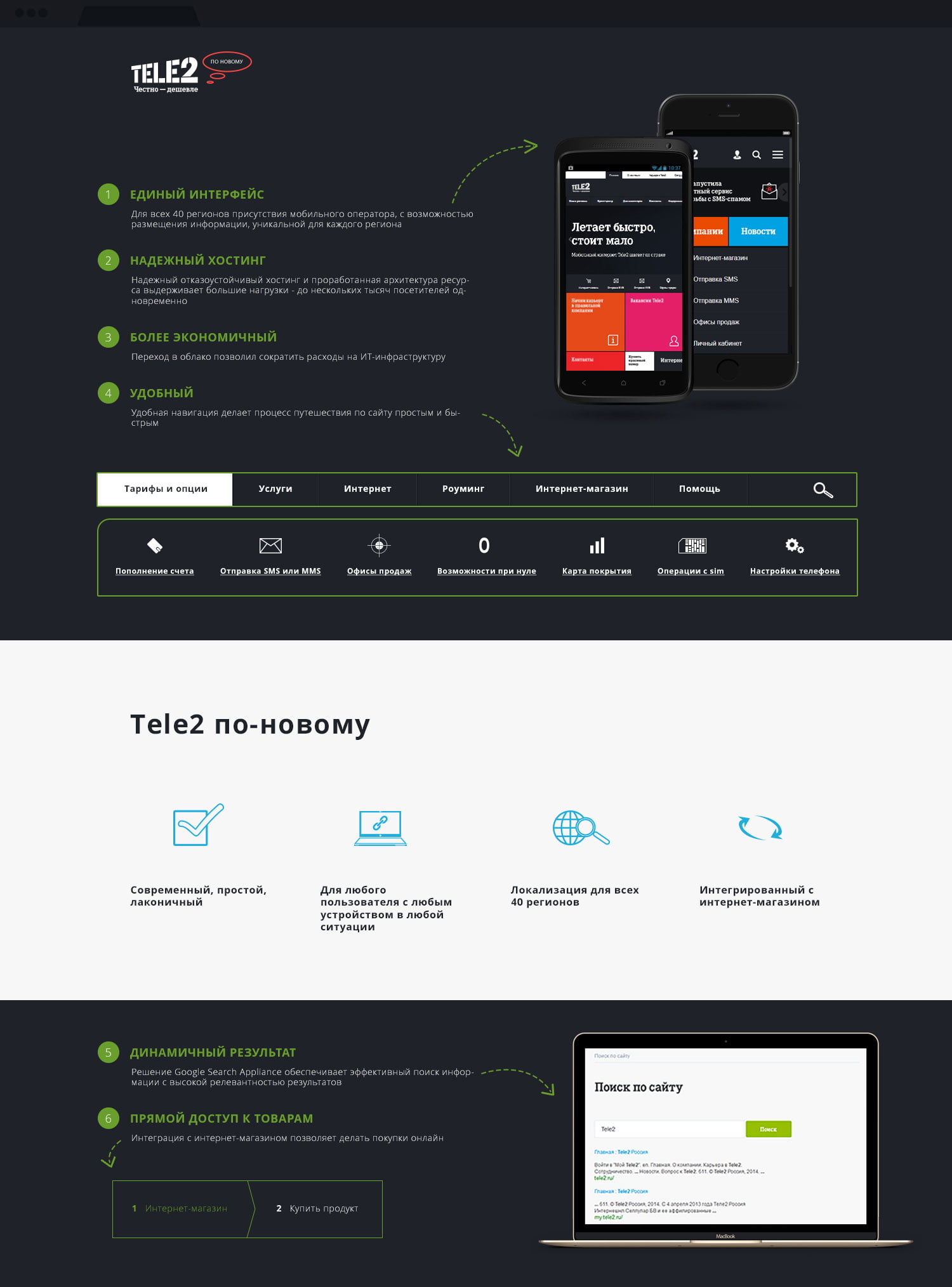 Полная целевая страница для каждой услуги с подробной структурированной информацией о возможностях и преимуществах предложения с возможностью совершать покупки онлайн, делиться информацией в социальных сетях.