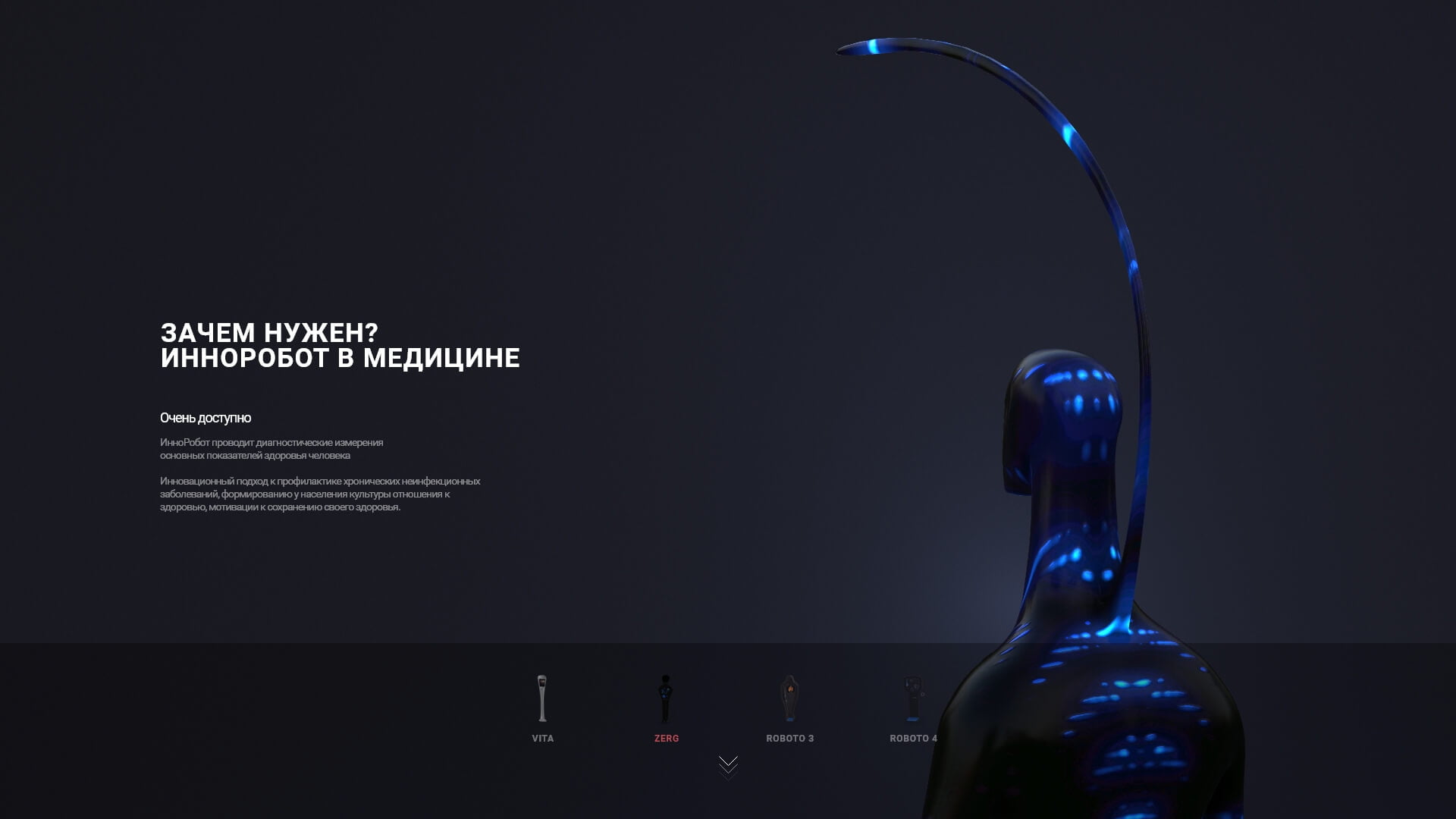 Медицина станет доступней глобальной аудитории, а это 63%. Всё быстро — никаких страхов, тайм-аутов: от записи на приём до фактического похода к врачу, от похода к врачу до практических мер. Робот ZERG будет восприниматься, как веселая затея — в игровой манере он призывает провести анализ общего состояния, в случае хорошего здоровья вы получите путевку на Марс, в случае тревожных изменении — незамедлительное обращение к врачу. Доступный контроль параметров своего организма сократит временные затраты на поход в клинику, снимая напряжение ожидания и волнения. Благодаря геймификации и соревновательному моменту под девизом «Путевка на Марс» у населения сформируется культура бережного отношения к здоровью. Дизайн продумывался на основании создания здорового будущего. Космическое существо Zerg ничего общего не имеет с медициной и в то же время предлагает проверить свое здоровье, увлекает экзотическим внешним видом и в игровой манере призывает провести анализ своего состояния. Каждый сможет соприкоснуться с событием, которое будоражит чувства.